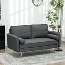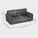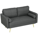 HOMCOM 56" Loveseat Sofa for Bedroom Upholstered 2 Seater Couch with Back Cushions and Pillows, Dark Grey
