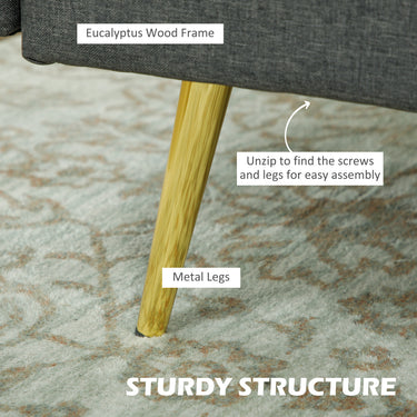 - • Materials: Linen (100% Polyester), Foam, Eucalyptus Wood, Steel