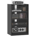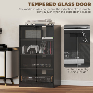 HOMCOM 5-Tier AV Media Stand with Push to Open Glass Doors, Audio-Video Storage Cabinet with Adjustable Shelves for DVD Players, Games Consoles, Routers, Distressed Black