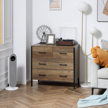 HOMCOM Dresser for Bedroom with 4 Drawers, Chest of Drawers with Metal Frame and Handles for Living Room, Hallway, Brown