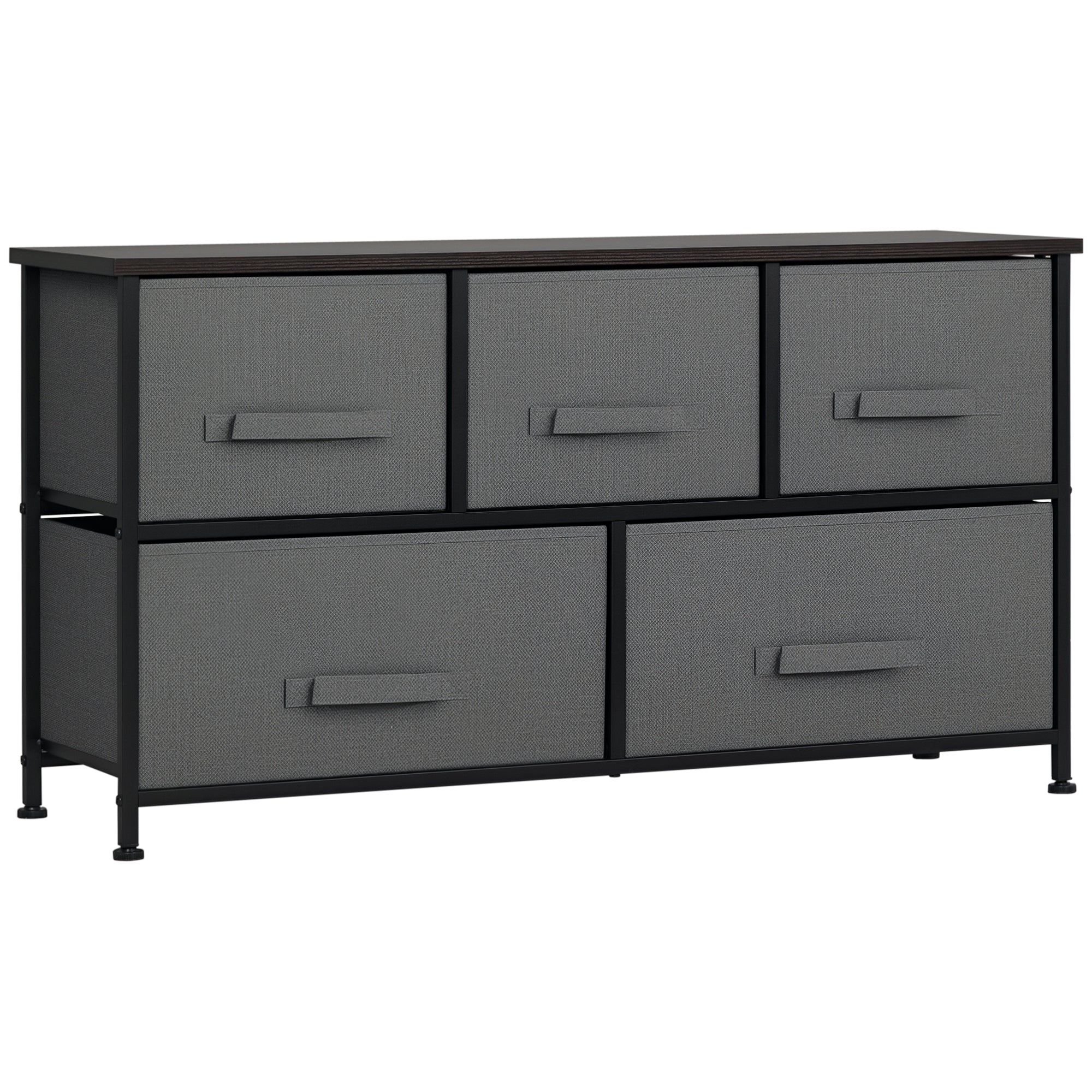 HOMCOM Linen Drawer Cabinet Organizer Storage Dresser Tower with 5 Removable Drawer Metal Frame Adjustable Feet for Living Room, Kitchen, Bathroom, Dark Grey
