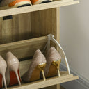 HOMCOM Shoe Storage Cabinet Organizer for 18 Pairs of Shoes with 3 Flip Drawers and Adjustable Shelves, Oak
