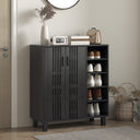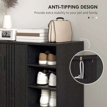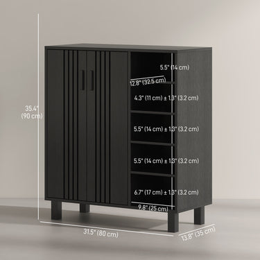 HOMCOM Shoe Storage with Double Doors and Open Shelves 17 Pair Shoe Storage Organizer for Entryway Hallway Black