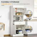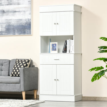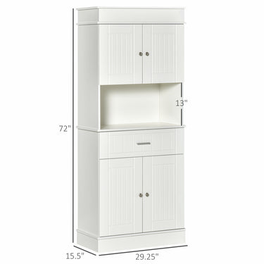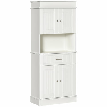 Space always seems to be at a premium in the kitchen, our kitchen buffet and hutch from HOMCOM can help solve that problem! The pantry is made of manufactured wood with a veneered surface and has a clean-cut design and neutral colour for a modern look. The look is completed by silver metal hardware. A drawer, a large counter, and two-door cabinets provide plenty of storage space for canned and dry goods, cutlery, and other items.