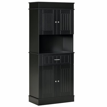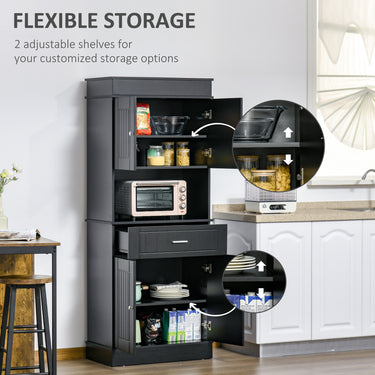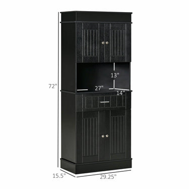 HOMCOM 72" Kitchen Pantry Cabinet, Freestanding Buffet with Hutch, Cupboard with Adjustable Shelf, Utility Drawer, 2 Door Cabinets and Countertop, Black Wood Grain