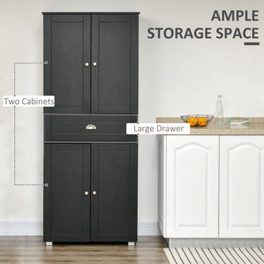 HOMCOM 72" Kitchen Pantry Cabinet, Modern Kitchen Pantry Storage Cabinet with 4 Doors and 3 Adjustable Shelves, Black