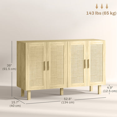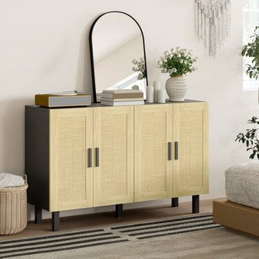 HOMCOM Boho Sideboard Buffet Cabinet, Storage Cabinet with 4 Rattan Doors and Adjustable Shelves, Black