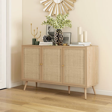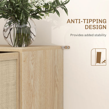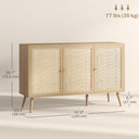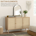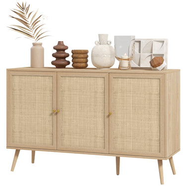 HOMCOM Kitchen Sideboard Cabinet, Boho Storage Cabinet with Shelves, Wood Legs, Decorative Rattan Doors, Natural