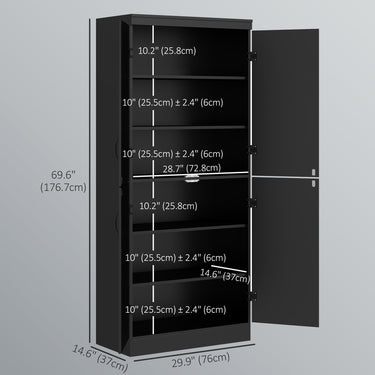 Need some more storage options in the kitchen? This kitchen pantry is here to help! Featuring a clean-lined design with neutral colour, this tall storage cabinet brings an updated touch to your homey aesthetic, while its two cabinets and 6-tier shelves offer up effortless storage for all your odds and ends. Add stylish storage and reduce visible clutter with our storage cabinet with doors and shelves from HOMCOM!