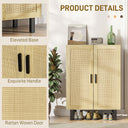 Are you looking for a valuable and elegant cabinet for your home? This HOMCOM buffet cabinet with storage features woven rattan wicker doors, adding a unique touch to any decor. Suitable for kitchens and dining rooms, it offers ample storage with three-level adjustable shelves. Crafted from particleboard with a melamine surface, it brings both elegance and practicality to your space.