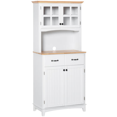 HOMCOM Coastal Style Kitchen Buffet and Hutch Wooden Storage Cabinet with Framed Glass Door Drawers Microwave Space for Dining Room Living Room White