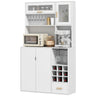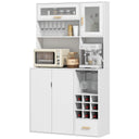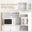 Transform your home with the HOMCOM kitchen cabinet, a versatile blend of wine storage, coffee bar, and microwave storage cabinet. Featuring 4 enclosed storage, 4 open compartments and 2 liquor collection space, it effortlessly organizes your kitchen essentials. The wide countertop manages microwave or coffee maker in a breeze, making it a great home bar and kitchen storage solution. Spend more time enjoying cooking and entertaining.