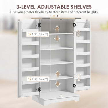 HOMCOM Farmhouse Kitchen Pantry Storage Cabinet, Kitchen Pantry Cabinet with Doors and Adjustable Shelves, Cream White