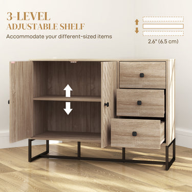 HOMCOM Modern Sideboard, 42.5" Buffet Cabinet with Adjustable Shelves and 3 Drawers, Coffee Bar Cabinet with 2 Doors, Oak