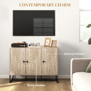 Transform your space with the HOMCOM buffet cabinet with storage, featuring eye-catching Chevron patterns and a chic two-tone effect. Crafted from robust particle board and MDF, this buffet cabinet features adjustable shelves for versatile storage. Stylish square handles and a robust steel base round out the appeal, making it an optimal choice for any kitchen, living room, or entryway.