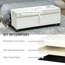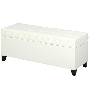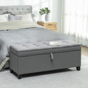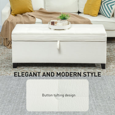 Transform your space with the HOMCOM storage ottoman! Offering a whopping 29.6 gal of storage, this chic ottoman bench is topped with a button-tufted seat, wrapped in breathable, foam-filled fabric for comfort. Great as a footstool or bedroom bench, it adds a touch of elegance while keeping clutter hidden. A smart, stylish way to sit, stash, and relax.