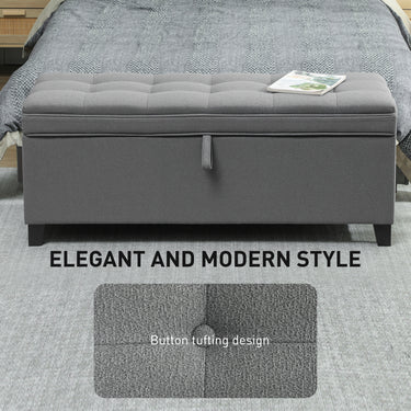 HOMCOM Storage Ottoman Bench, Foot Rest with Safety Hinges, 47 Inches Linen Storage Chest for Living Room, Dark Grey