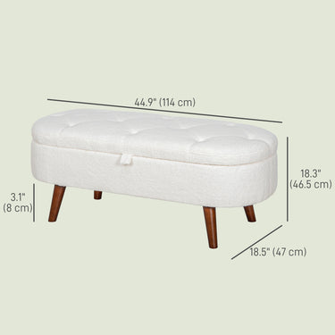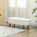 Discover the charm of the storage ottoman bench from HOMCOM. Tuck away your treasures discreetly with its hidden storage under a hinged top. Revel in the luxury of teddy fleece fabric and a tufted diamond-patterned top, offering both a plush footstool and hidden storage. Suitable as a hallway bench, end of bed bench, or ottoman stool, this oval-shaped beauty with rubber wood legs transforms any room with a cozy, versatile touch.