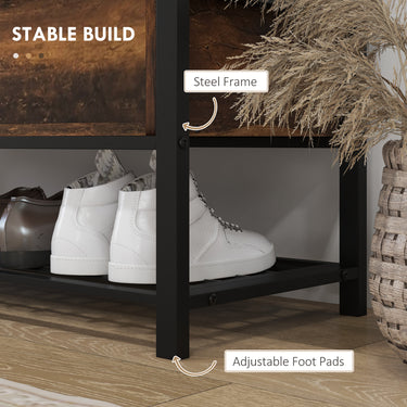 It's time to organize your shoes with our HOMCOM shoe storage bench. Its industrial look makes it pair well with any décor in your room. You can put socks, keys and anything else you would like in the hidden compartment and bottom shelf to enable space in your home. The open design makes it easy to find your shoes at once. Also, our shoe bench can be used as a storage unit in the living room, entryway and other places. Keep your shoes neatly and tucked away with our entryway bench with storage.