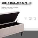 HOMCOM Storage Ottoman, Linen Fabric End of Bed Bench with Soft Close Lid, Button Tufted Storage Bench for Living Room, Entryway or Bedroom, 42" x 17" x 19", Beige