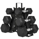 Soozier 60 LBS Hex Dumbbell Set with Rack, Rubber Coated Weights with Non-Slip Handles for Home Gym Strength Training