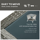 The rattan outdoor lounge furniture from Outsunny comes with a lounger, cushion, and two-tier side table. The pool lounge chair's backrest has five adjustable positions for maximum relaxation and comfort. The side table also has a glass top to keep your drinks within easy reach. The rattan outdoor lounge furniture can be utilized indoors or outdoors in your home. It will ensure to feel relaxed while sunbathing with Outsunny outdoor furniture.