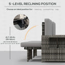 Outsunny 5PC Wicker Patio Lounger, Outdoor PE Rattan 5-level Adjustable Recliner Sofa Bed with Storage Side Table and Footstools, for Patio, Garden, Poolside, Khaki