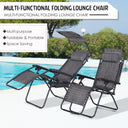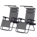 Outsunny 2 Piece Foldable Lounge Chair with Canopy Shade, Outdoor Zero Gravity Chair w/ Side Tray & Cup Holder, Reclining Lounger w/ Breathable Mesh Fabric Seat, Pillow, Dark Grey