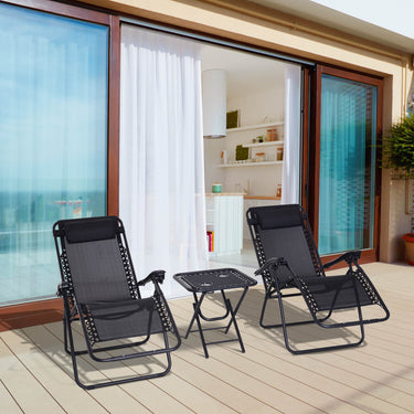 Outsunny Zero Gravity Chair Set of 2 Patio Chair with Side Table Cupholders and Pillows for Pool, Backyard, Lawn, Black