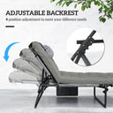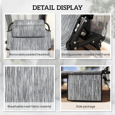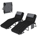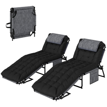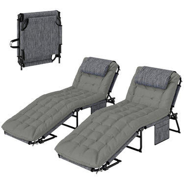 Outsunny 2-Piece Folding Lounge Chairs with Adjustable Backrest, Tanning Chair with Cushion, Side Pocket, Headrest, Grey