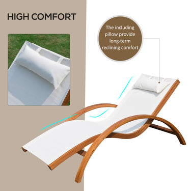 Outsunny Outdoor Wood Sling Chaise Lounge Reclining Garden Mesh Lounger Patio Chair with Headrest Cream