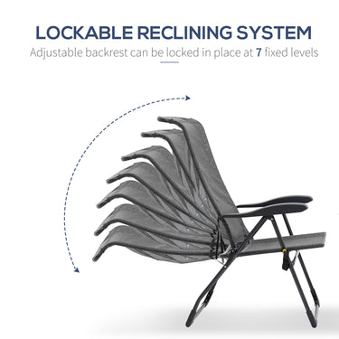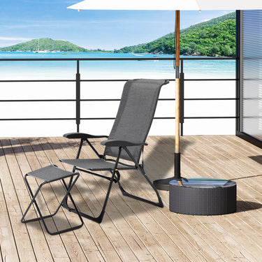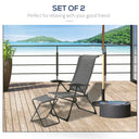 Outsunny Patio Lounge Chair Outdoor Lounger Recliner Folding Camping Chair with Footrest and Storage Pocket, Black Grey