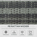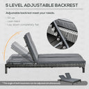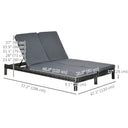 Outsunny Wicker Double Chaise Lounge Chair Outdoor Recliner 2 Person Rattan Patio Reclining Sunbed Furniture Cushioned w/Adjustable Backrest, Black, Grey