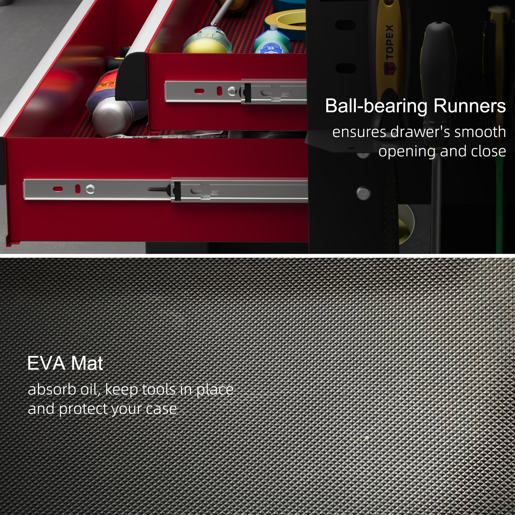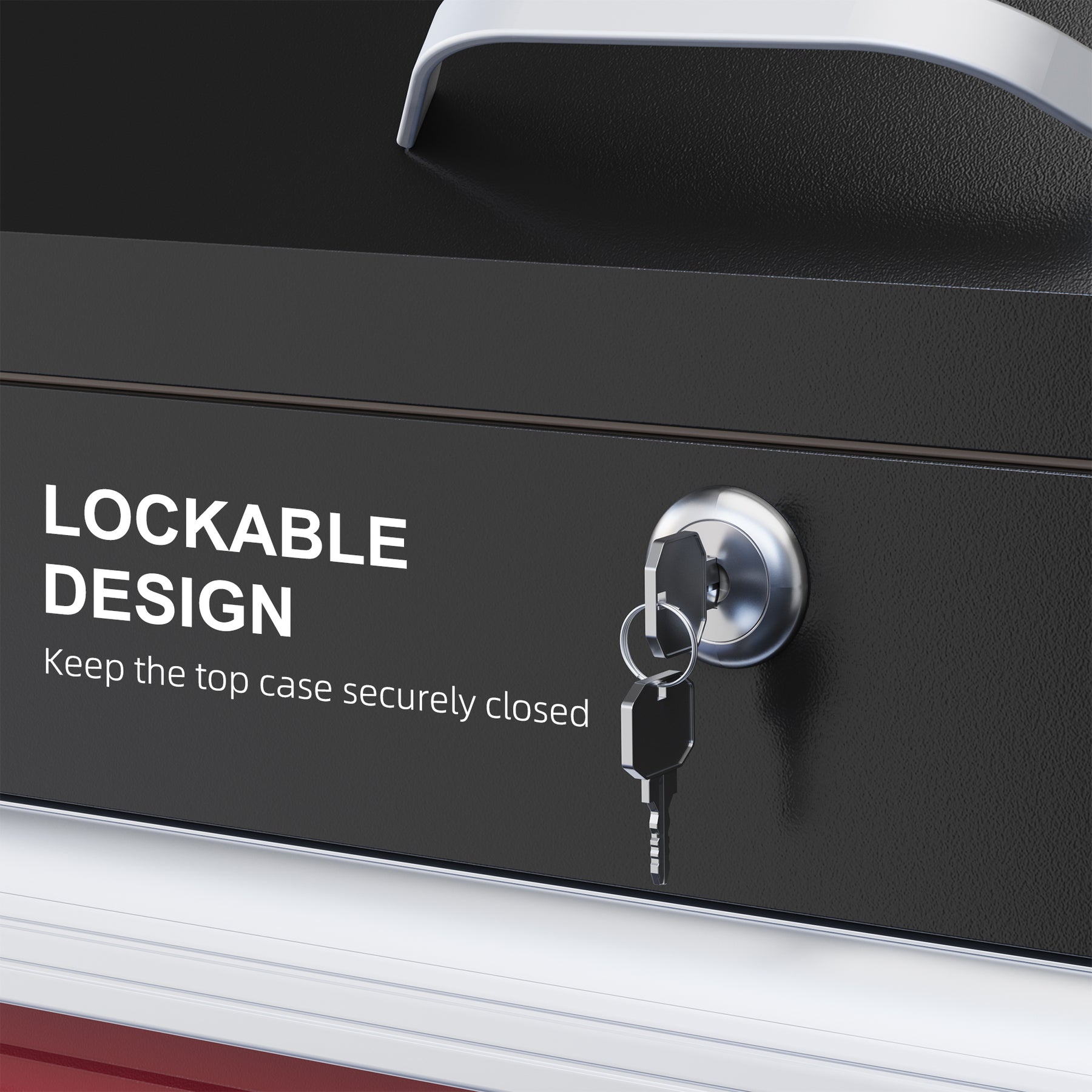 Unleash the full potential of your workspace with the tool cart with wheels from HOMCOM. Featuring a smooth-gliding drawers on ball-bearing runners, three trays and side slots for tool placement, it maximizes organization. Designed for easy movement, this HOMCOM rolling cart includes a handy side handle and four wheels with a brake, making it the go-to piece for every project.