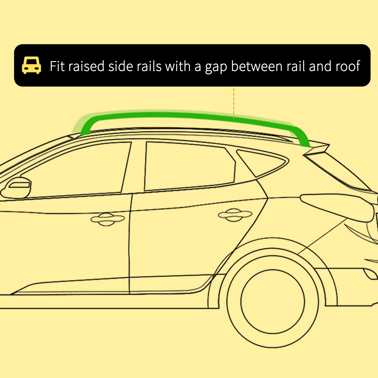 - • Fit 2 kind of car roofs which has a certain space between the rail and the roof or with grooves or slopes outside