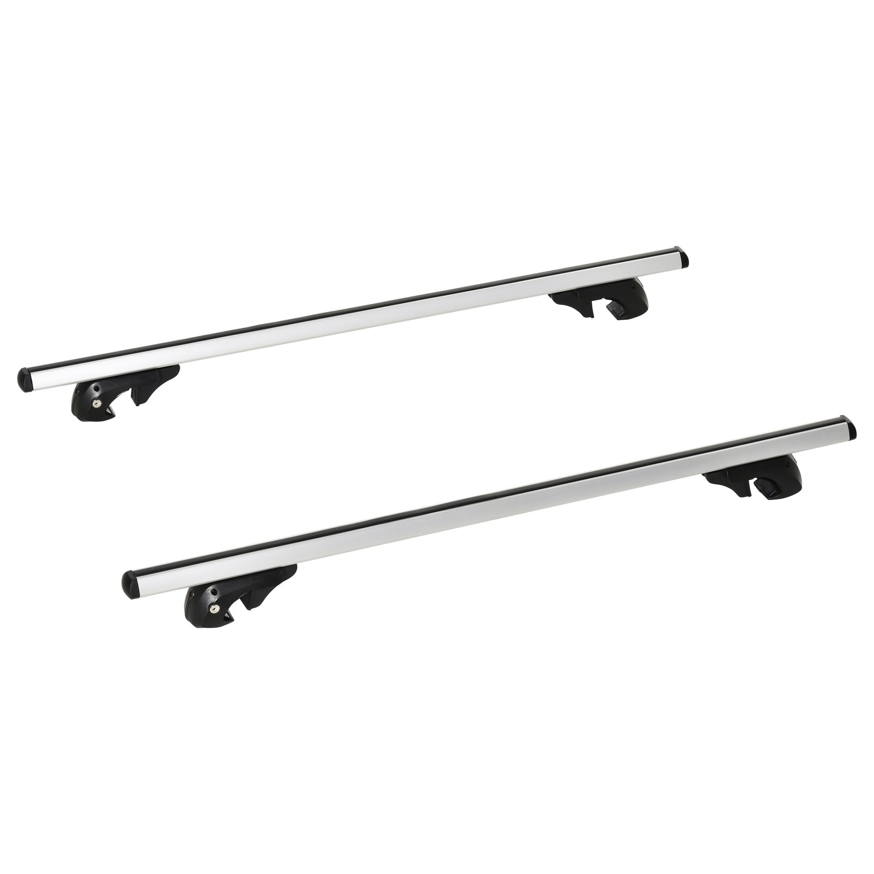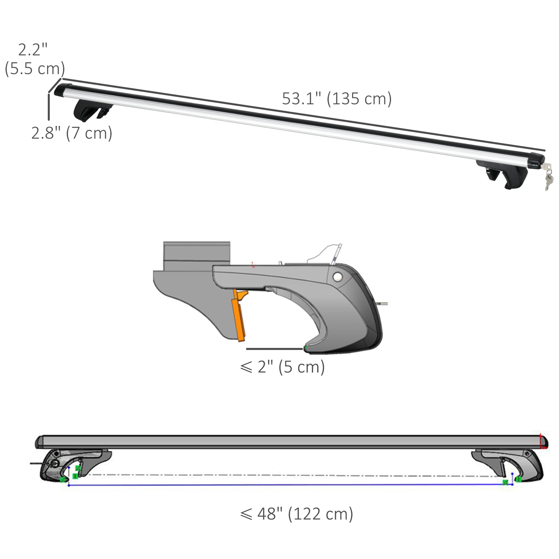 This HOMCOM cross bar roof rack is a great addition to your outdoor vehicle travel. It can be used to carry luggage, baggage, various carrier and containers which allows transporting objects on the roof without reducing interior car space. Adjustable feature fits for roof rack which has a certain space between the rail and the roof or with grooves or slopes outside. The lockable design for more security. Functional and stylish, a great necessary travel accessory. Start your summer vehicle trip this summer!