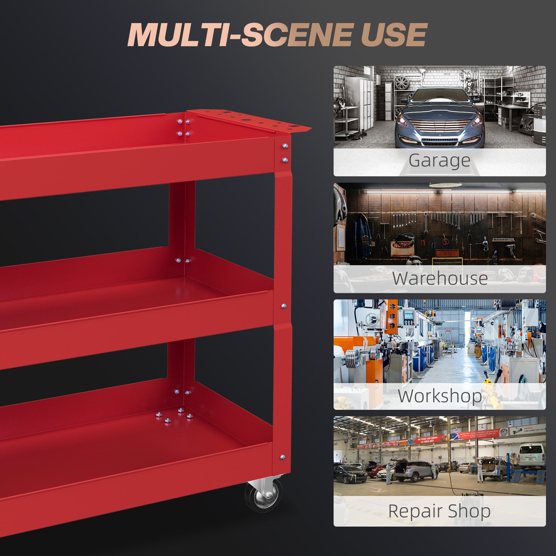 A great tool storage solution from DURHAND. The practical tool cart with wheels comes completely with 3-tier trays for storing all of your tools and keeping them organized. This unit provides with spacious storage space for garage essentials and other tiny accessories. Four rolling wheels (2 with brake) for easy movement. Designed to be suitable for any garage or workshop. It will be a must-have in your house!