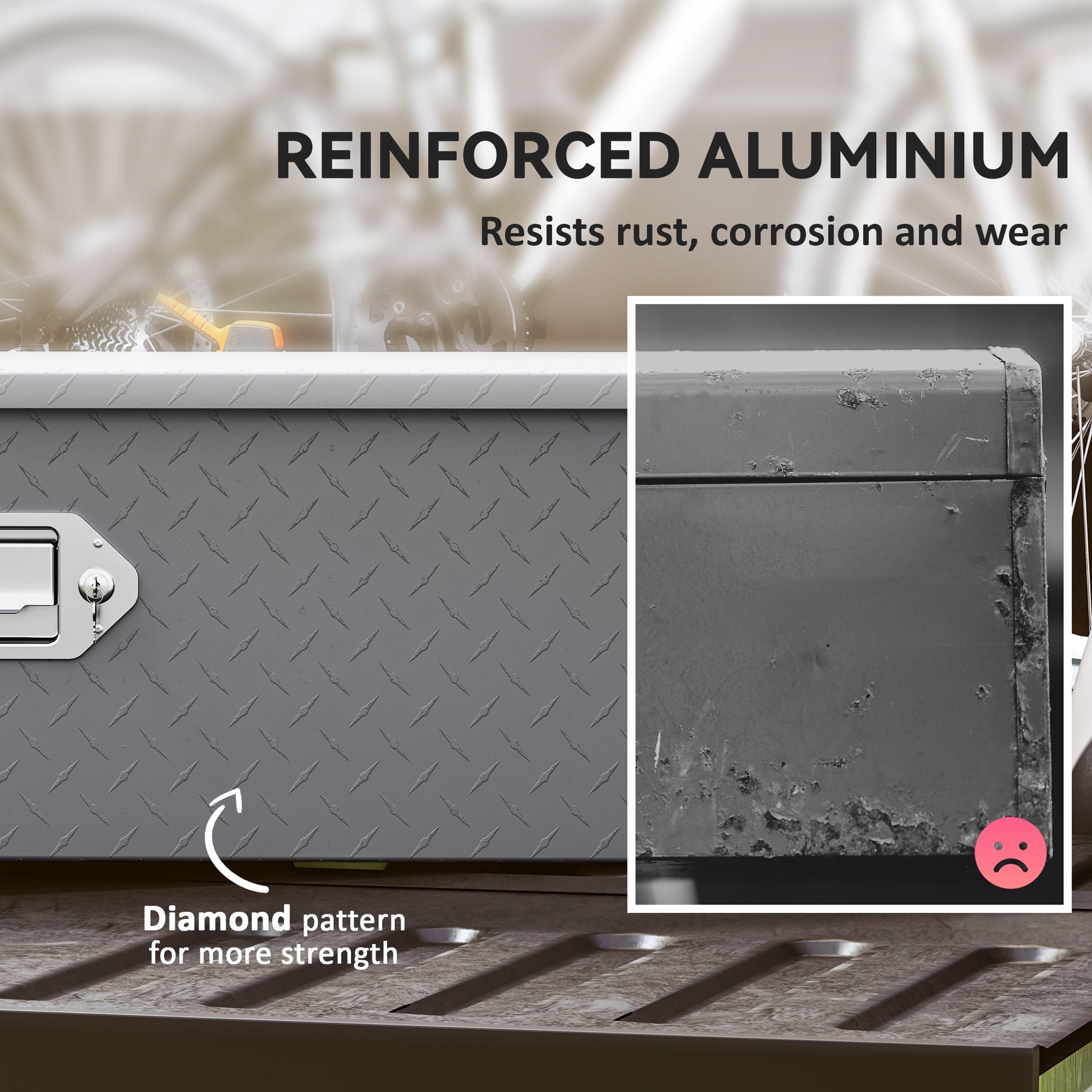 - • Thickened aluminum diamond plate with paint to resists rust, corrosion and wear