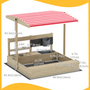 Outsunny Kids Sandbox with Cover Kitchen Playset Toys, Wooden Sand Box with Seat, Storage, for 3-7 Years Old, Grey
