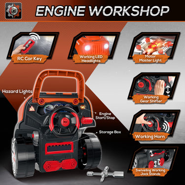 Qaba Kids Truck Engine Toys for Boys Girls 3 4 5 Years Old, Toddlers Construction Educational Repair Car Tool Set with Light and Sound, Orange