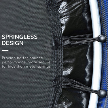 If you're looking for a low-impact way to give your child a fun cardio workout, the Outsunny Trampoline with a security enclosure net is an excellent choice. It is constructed with a reliable metal frame for long-lasting use, and the enclosure net enhances safety during play. This trampoline uses high-strength bungees instead of traditional metal springs to deliver a great bounce while reducing the risks associated with metal springs.