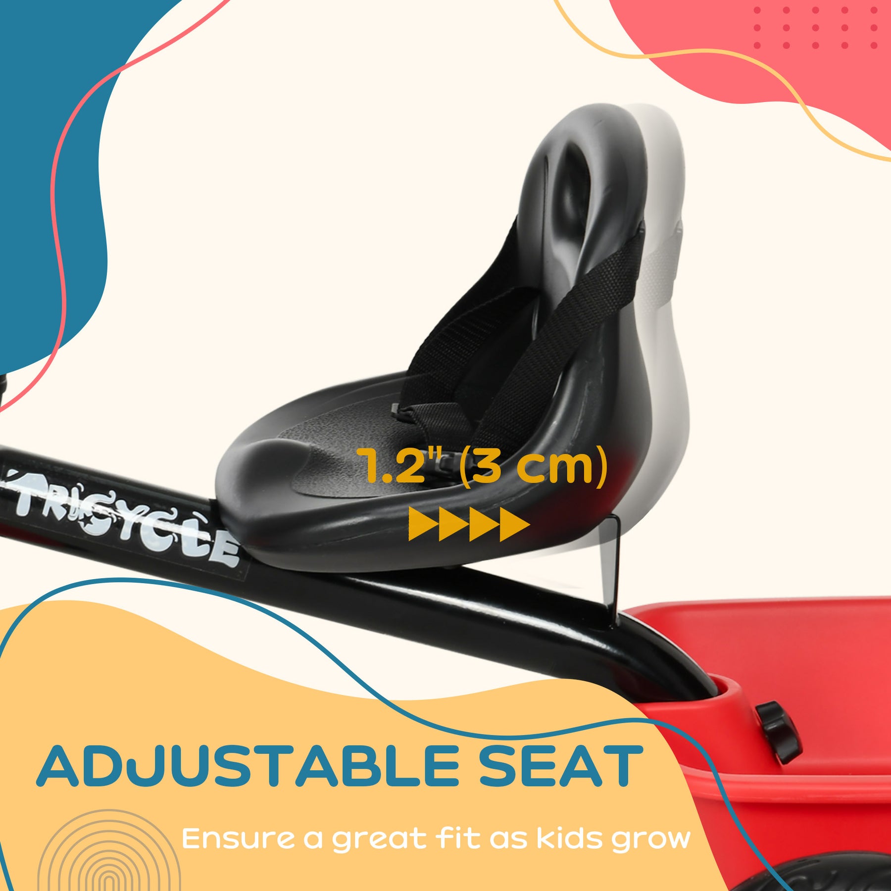 Experience the joy of adventures with the tricycle from Qaba! Designed to provide endless fun for your kid, it combines safety, convenience, and entertainment. With an adjustable seat, it grows with your child. Safety is our top priority, so it features a sturdy steel frame and a safety belt. Let children's creativity soar as they explore surroundings, develop motor skills, and create unforgettable memories. Watch as their confidence and independence blossom with each pedal they take.
