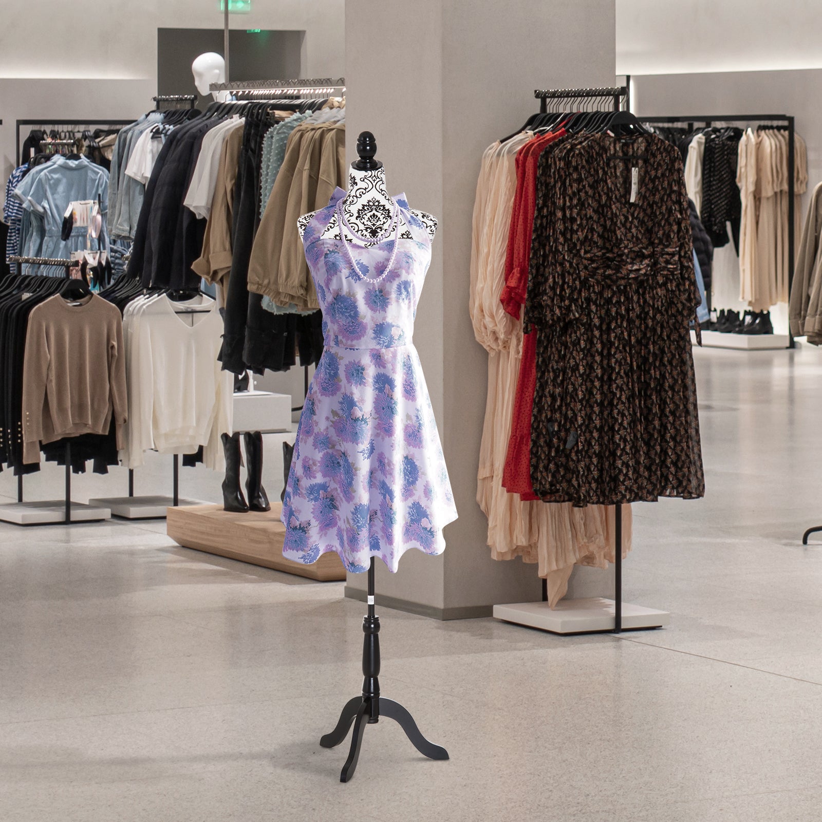 Display your clothes in the best light possible with our practical yet stylish dressmaker form with tripod stand. Features height adjustable to accommodate a variety of garment styles and its pine wood finish looks good in any setting. The best part about this package that it is a complete deal with form and base with no need for two separate purchases. Made from high density foam, is sturdy, durable and perfect for displaying clothes. Lightweight design makes it easy to transport for use indoors or outside. Perfect for fairs, market stalls and shops, it will help boost your sales and appearance.