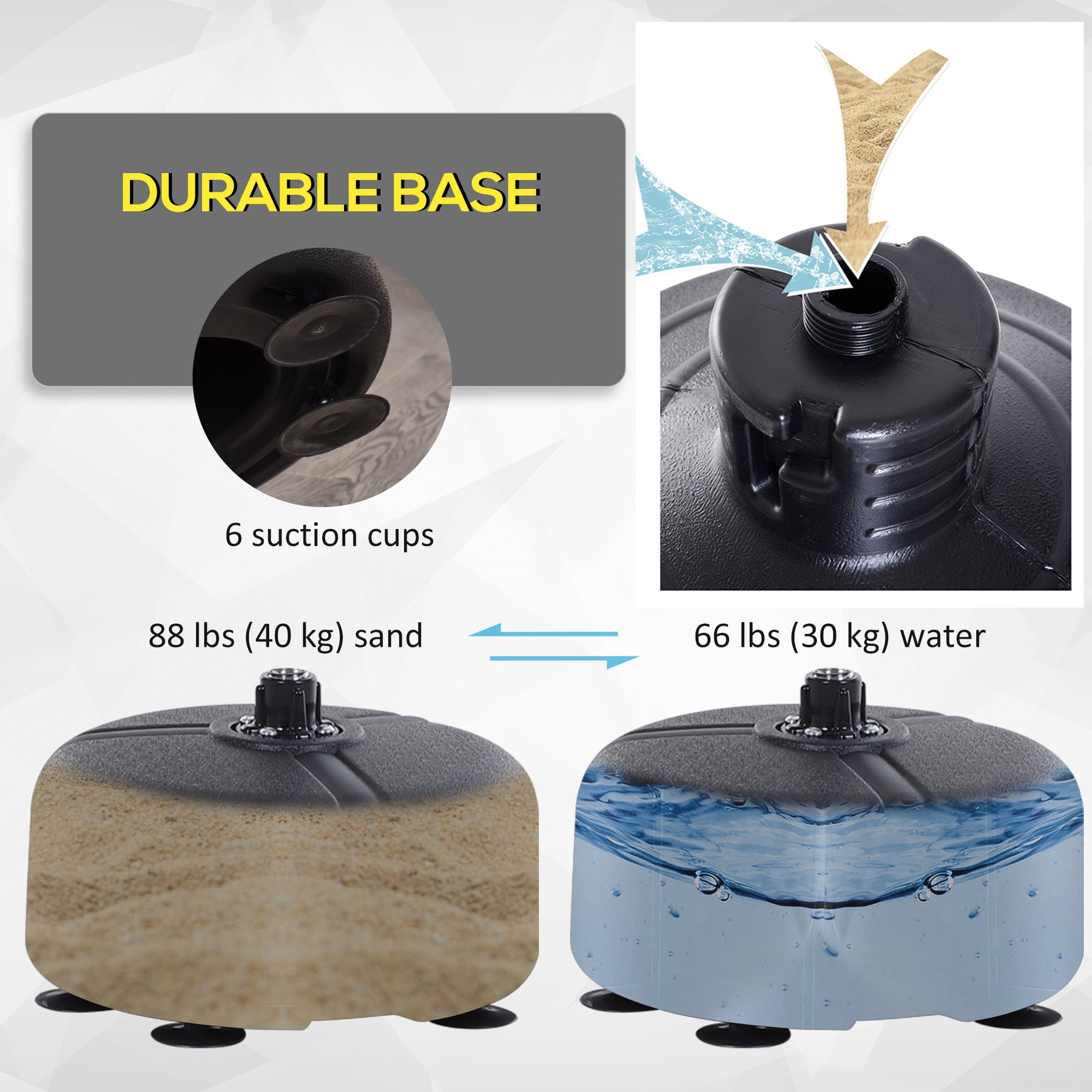 - • Base fills with 88 lbs. (40 kg) sand or 66 lbs. (30 kg) water for stability