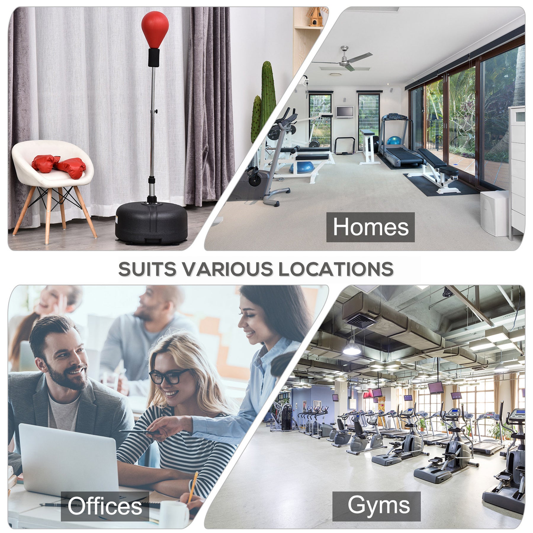 Unleash your inner champion with the Soozier boxing punchbag set! Tailor your training with a four-position height-adjustable setup. Fill the base with up to 88 lbs. (40 kg) of sand or 66 lbs. (30 kg) of water for solid stability, anchored further by six robust suction cups. Great for home workouts, this set includes a responsive punching ball and gloves to get you in fighting form!