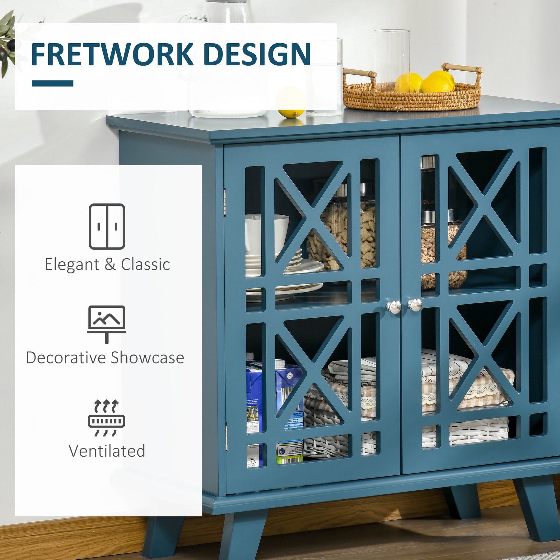 Creating a smart storage option has never been so easy! This classic sideboard from HOMCOM fits nicely with any décor and can be used in the kitchen, dining room, and living room to create additional storage. Its fretwork design brings elegance and class to your home. Also, the floor storage unit provides ample storage for daily accessories, utensils, dry goods, DVDs, linens, and towels.