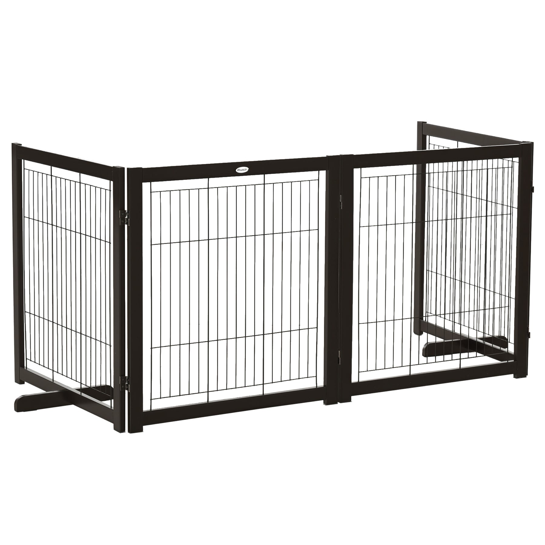 This PawHut folding dog gate is a safe and efficient way to confine your pets while also adding a decorative touch to your home. This foldable pet gate has four separate panels secured with robust hinges and can be folded down or used as a freestanding setup—wide support feet on the ends for balance, as well as non-slip mats for extra stability. The stylish wooden pet gate will look great in any room of your home and is great for doorways, hallways, entryways, and staircases.