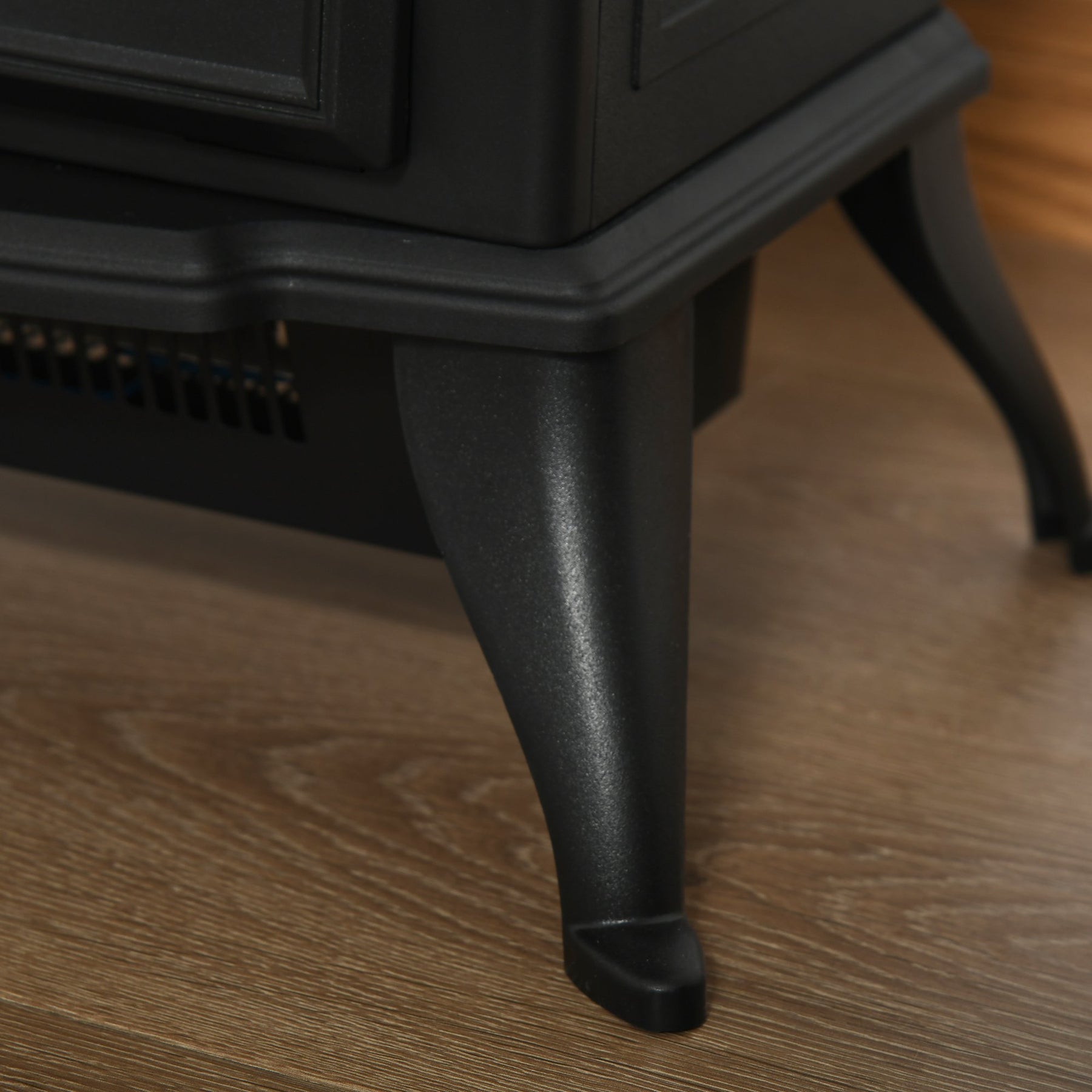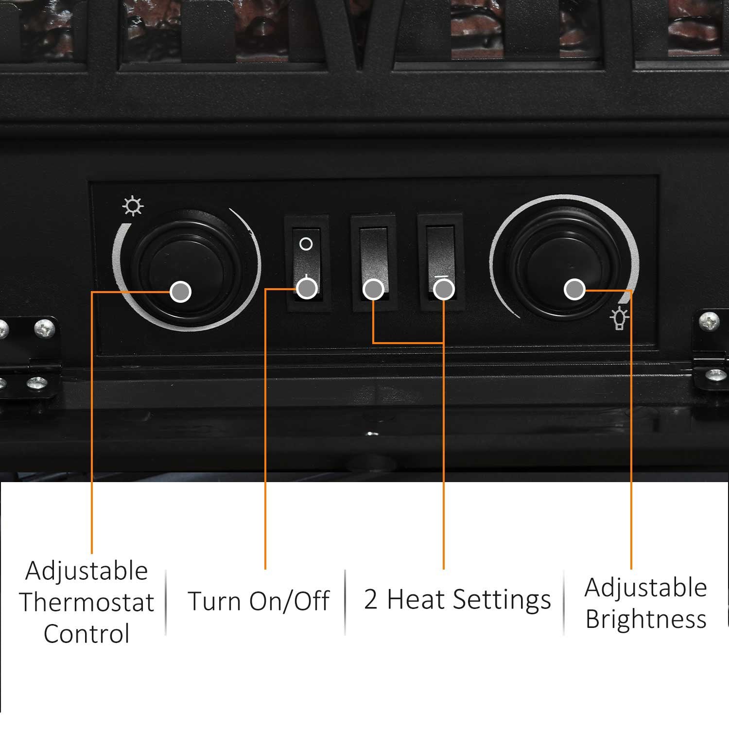 - • Freestanding electric fireplace with transparent tempered glass on front for better viewing