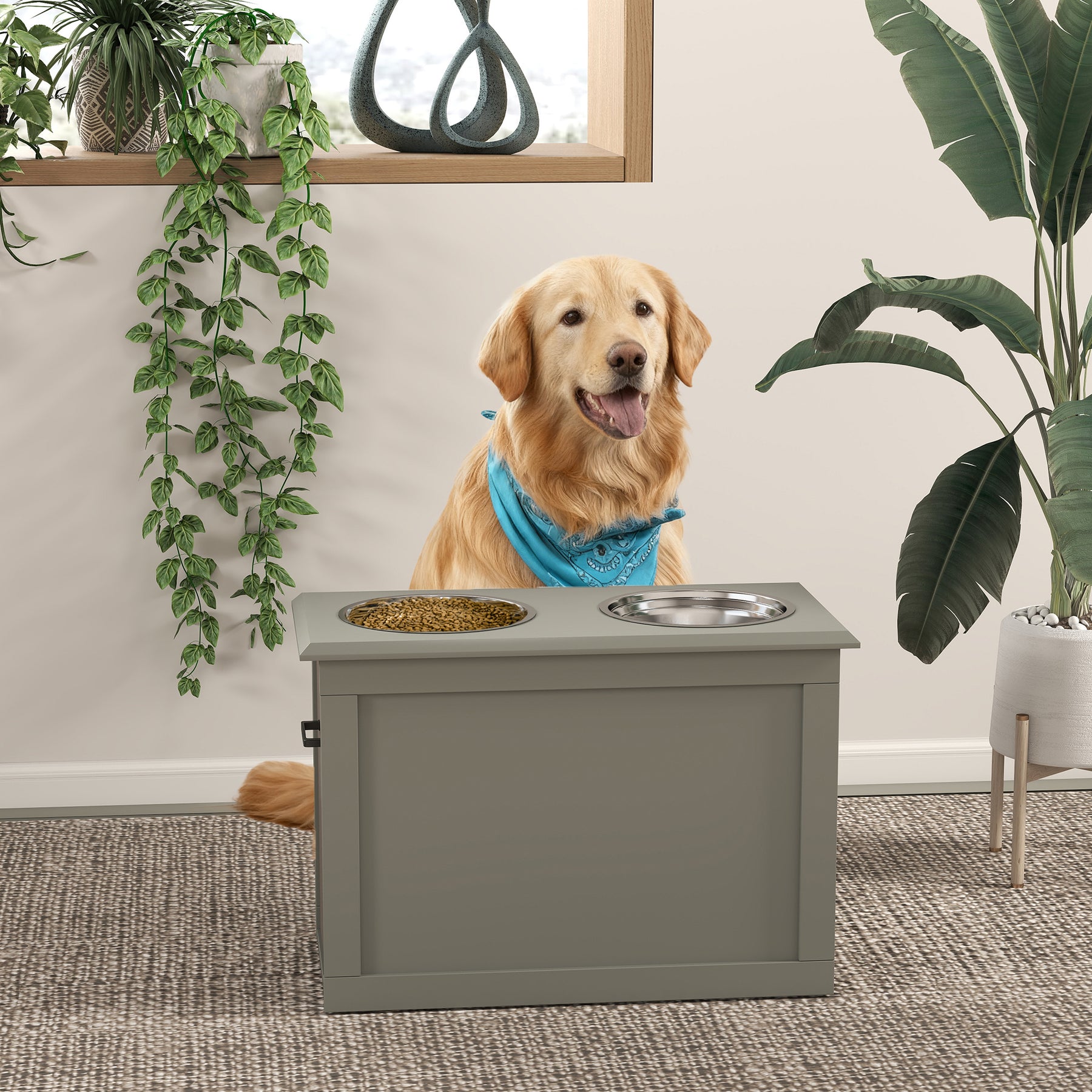 This PawHut raised dog bowl provides a comfortable and healthy way to feed your lovely little friend. Made of solid P2 grade MDF material and stainless steel, the feeder is rust-resistant and sturdy. The bowl is removable, easy for you to fill the food/water and wash it. And the feeder with hidden storage space can be used to place some pet supplies. Also, the stand equipped with an elevated design can reduce the strain on dogs' necks, backs, and joints. Don't hesitate to buy it!