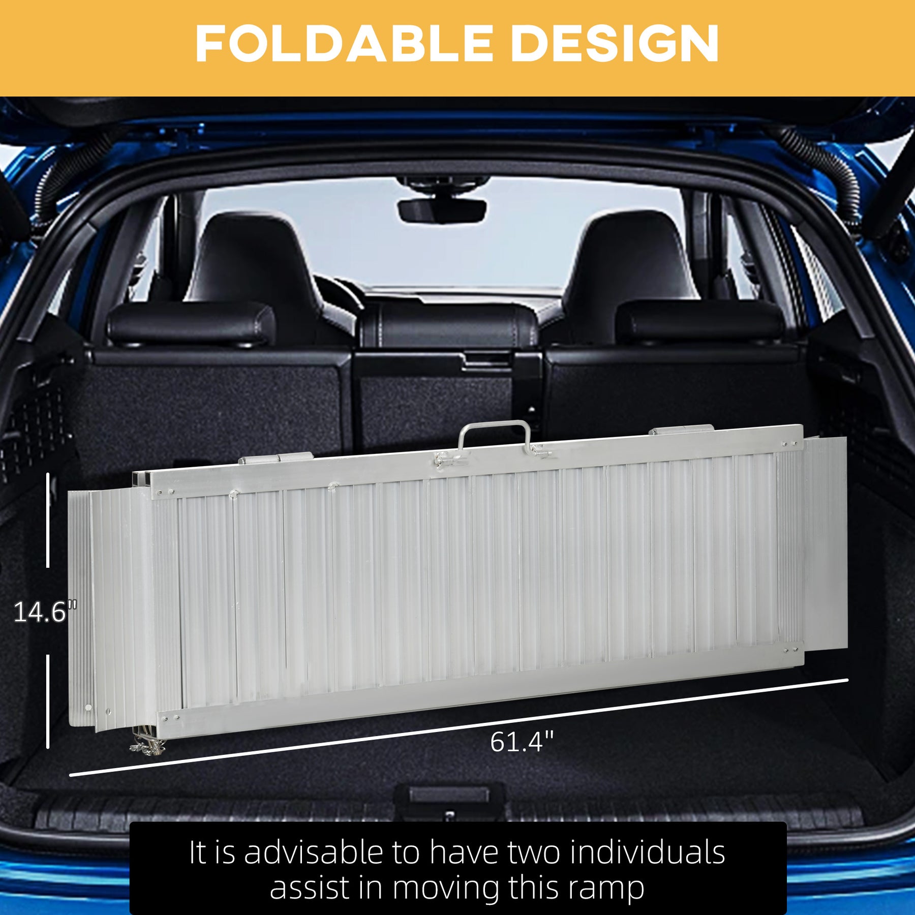 Let HOMCOM help create complete, easy mobility with our portable ramp. Built from a sturdy, anti-corrosive aluminum alloy, this scooter ramp uses a ribbed surface to prevent sliding in any weather and has two high side walls to help prevent accidental falls. Not only for use with wheelchairs, this folding ramp provides ease of access for scooters, bikes and any other unwieldy wheeled object.